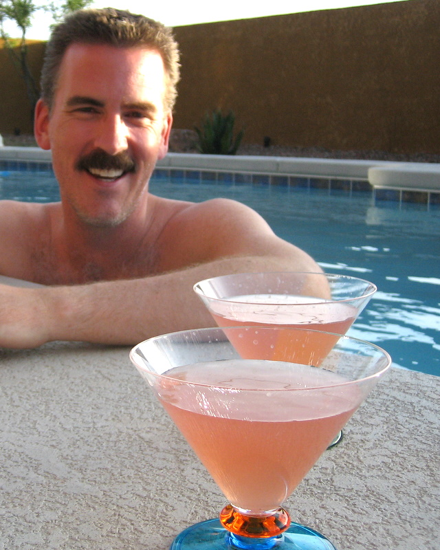 It was about 100 degrees yesterday afternoon. When we got home from work, Ray shook up some Cosmopolitans and I hopped in the pool.